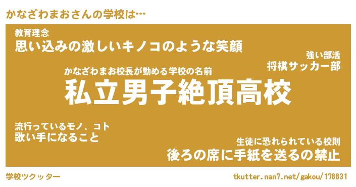 | 女子向けラノベタイトル風あだ名 | 『かなざわまお姫と円卓の騎士』 |