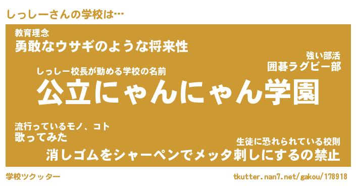 | 男性向けラノベタイトル風あだ名 | 『しっしーの憂鬱』 |