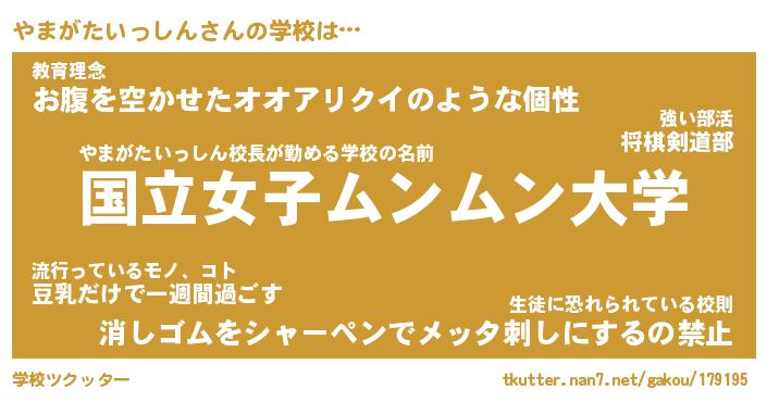 | 男性向けラノベタイトル風あだ名 | 『ヤマガタイッシンアートオンライン』 |