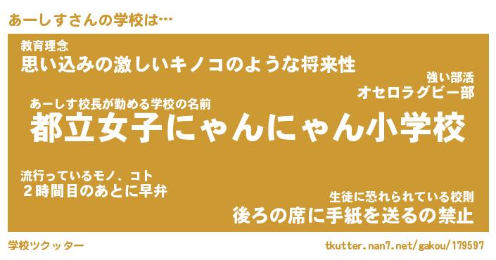 | 意味不明あだ名 | 『ペロリンあーしす』『永久保存あーしす』 |