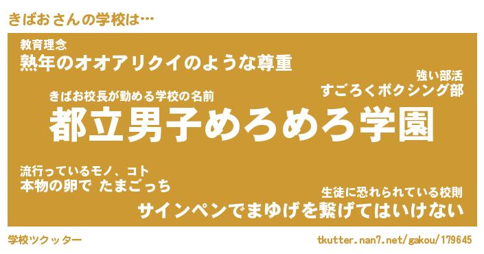 | 女子向けラノベタイトル風あだ名 | 『きばお姫と円卓の騎士』『きばお恋絵巻』 |