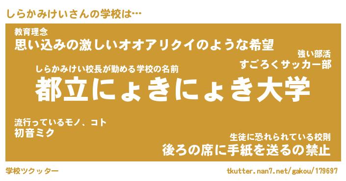 | 男性向けラノベタイトル風あだ名 | 『しらかみけいの憂鬱』 |