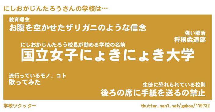 | ヘコむあだ名 | 『にしにゅー』『酢こんぶ』『にしを』 |