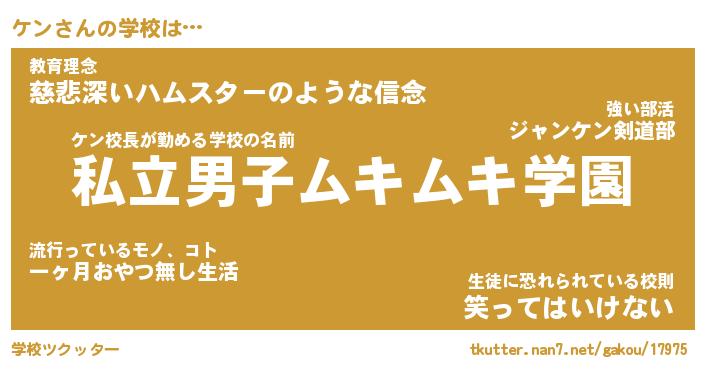 | 男性向けラノベタイトル風あだ名 | 『ケンの憂鬱』『ノーゲーム・ノーケン』 |