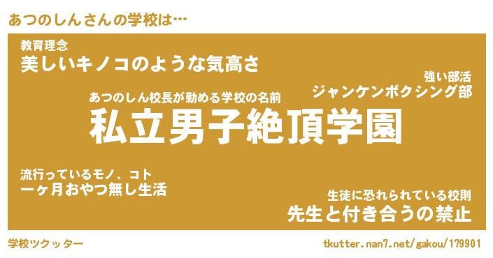 | 男性向けラノベタイトル風あだ名 | 『あつのしんの憂鬱』 |