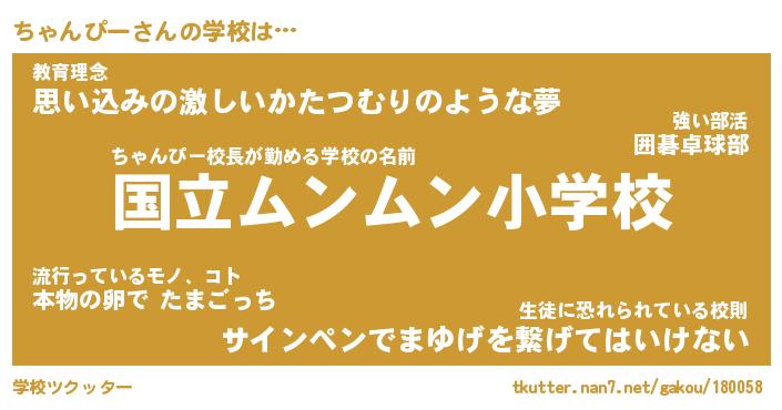 | 男性向けラノベタイトル風あだ名 | 『ちゃんぴーの憂鬱』 |