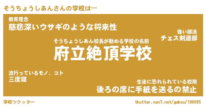 | 男性向けラノベタイトル風あだ名 | 『そうちょうしあんの憂鬱』 |