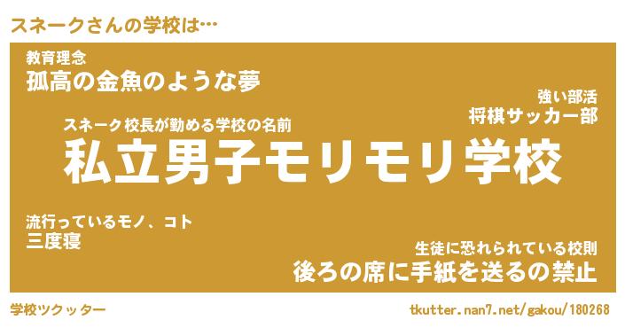 | 男性向けラノベタイトル風あだ名 | 『スネークの憂鬱』 |