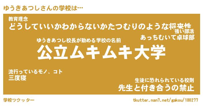 | 肩書あだ名 | 『ゆうきあつし社長』『ゆうきあつし班長』 |