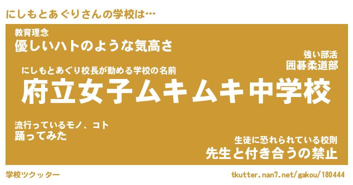 | ヘコむあだ名 | 『にしにー』『豆乳』『にしぷりん』 |