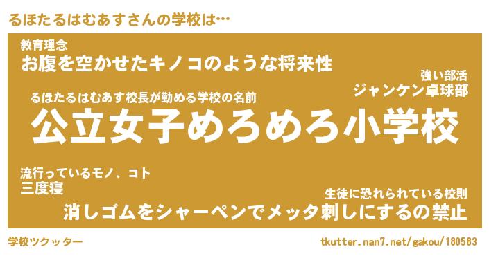 | 伝説のあだ名 | 『封印されしスナイパーるほたるはむあす』 |