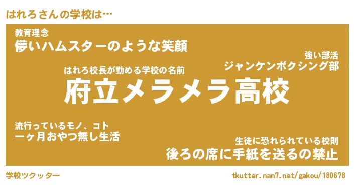| ヒーロー風カッコイイあだ名 | 『スーパーハレロ』『ウルトラはれろマン』 |