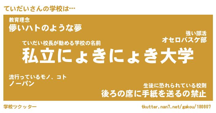 | 意味不明あだ名 | 『ペロリンていだい』『永久保存ていだい』 |