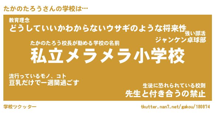 | 肩書あだ名 | 『たかのたろう社長』『たかのたろう教頭』 |