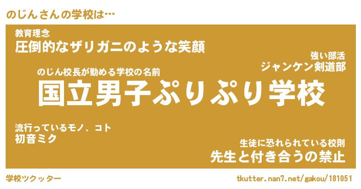 | 男性向けラノベタイトル風あだ名 | 『のじんの憂鬱』 |