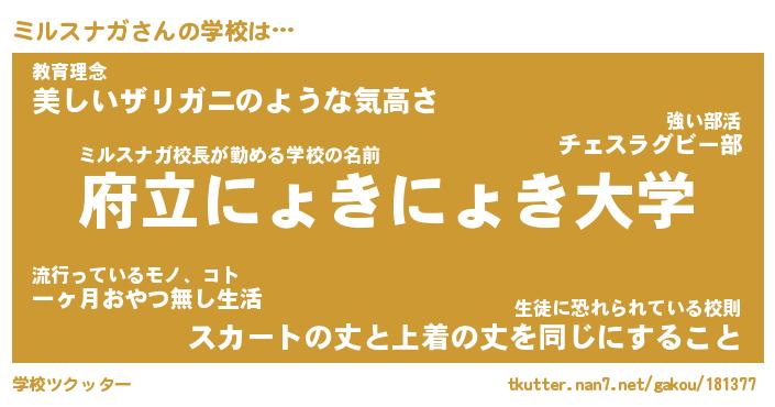 | 男性向けラノベタイトル風あだ名 | 『ミルスナガの憂鬱』 |