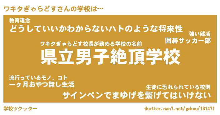 | 女子向けラノベタイトル風あだ名 | 『ワキタぎゃらどす姫と円卓の騎士』 |