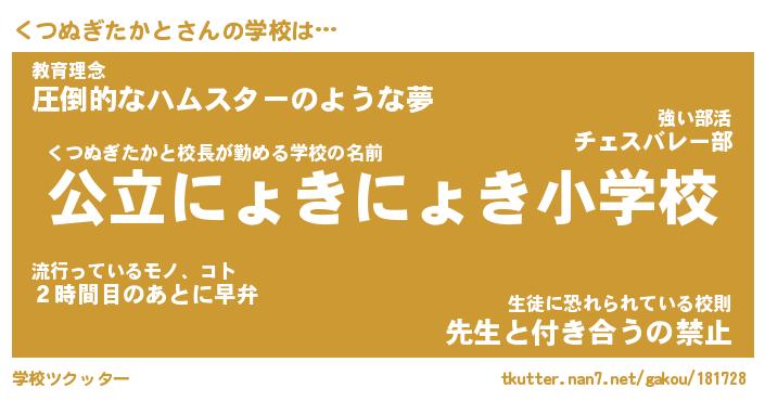 | 男性向けラノベタイトル風あだ名 | 『くつぬぎたかとの憂鬱』 |