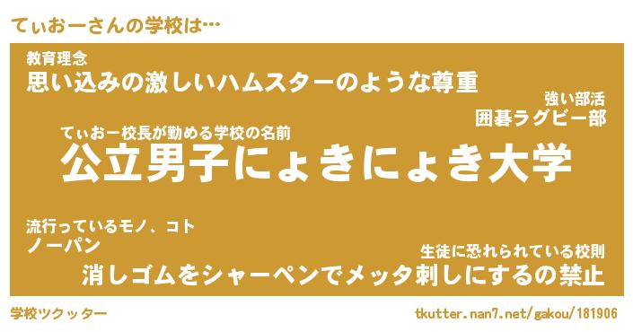 | 男性向けラノベタイトル風あだ名 | 『てぃおーの憂鬱』 |