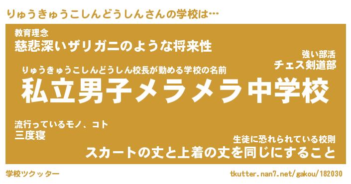 | 男性向けラノベタイトル風あだ名 | 『りゅうきゅうこしんどうしんの憂鬱』 |
