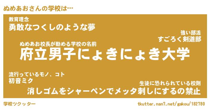 | 意味不明あだ名 | 『ペロリンぬめあお』『永久保存ぬめあお』 |
