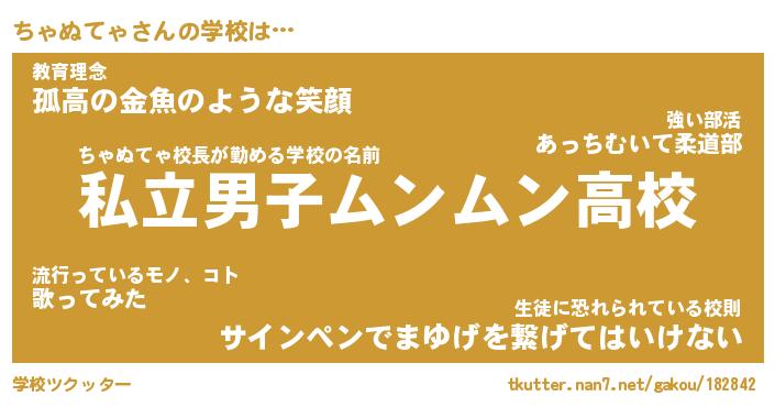 | 男性向けラノベタイトル風あだ名 | 『ちゃぬてゃの憂鬱』 |