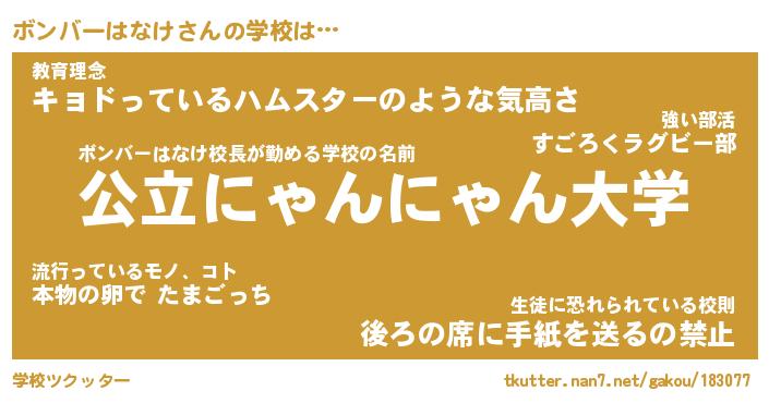 | 男性向けラノベタイトル風あだ名 | 『ボンバーはなけの憂鬱』 |