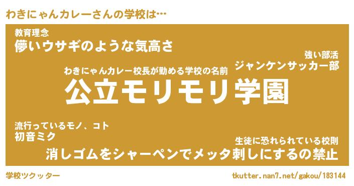 | 男性向けラノベタイトル風あだ名 | 『わきにゃんカレーの憂鬱』 |
