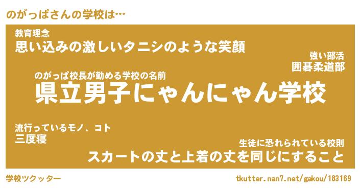 | 意味不明あだ名 | 『ペロリンのがっぱ』『永久保存のがっぱ』 |