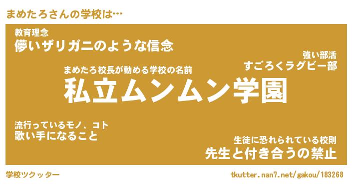 | 意味不明あだ名 | 『ペロリンまめたろ』『永久保存まめたろ』 |
