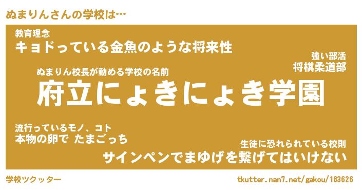 | 男性向けラノベタイトル風あだ名 | 『ぬまりんの憂鬱』 |