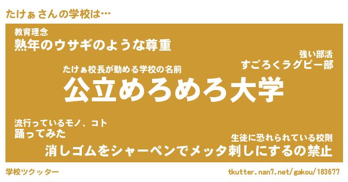 | ファンタジー風あだ名 | 『タケフェル』『エターナルタケァー』 |