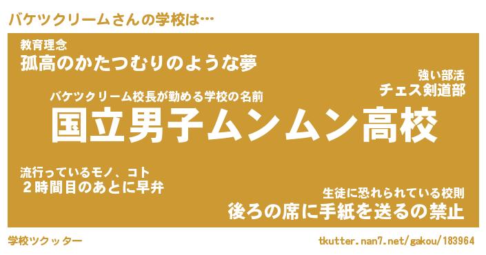 | 男性向けラノベタイトル風あだ名 | 『バケツクリームの憂鬱』 |