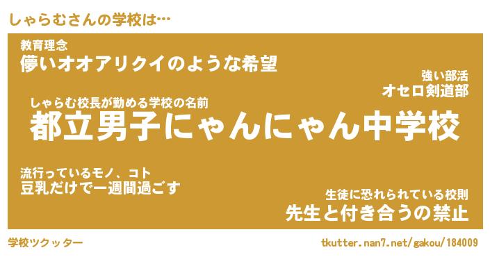 | 公立男子ムキムキ中学校は(略 …「」 | 10月03日 07:36 |
