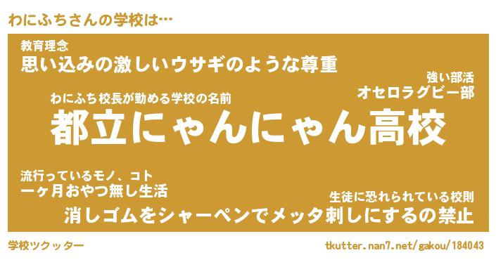 | 伝説のあだ名 | 『伝説のスナイパーわにふち』 |