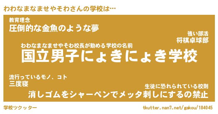 | 男性向けラノベタイトル風あだ名 | 『わわなまなませやそわの憂鬱』 |