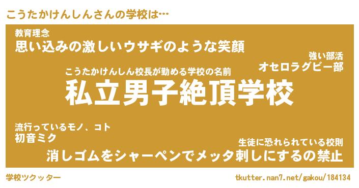 | 男性向けラノベタイトル風あだ名 | 『こうたかけんしんの憂鬱』 |