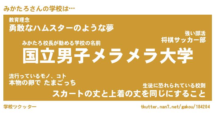 | 意味不明あだ名 | 『ペロリンみかたろ』『永久保存みかたろ』 |