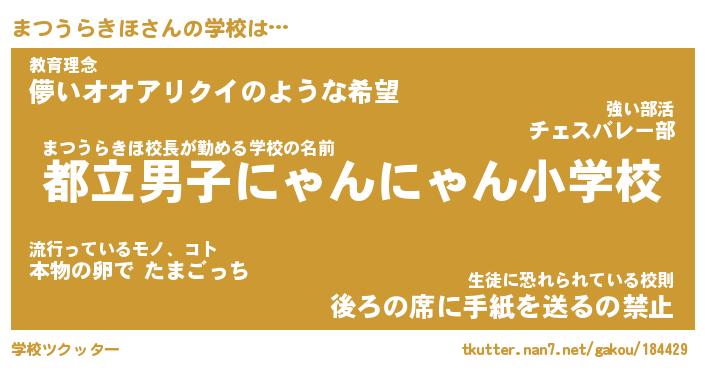 | 男性向けラノベタイトル風あだ名 | 『マツウラキホアートオンライン』 |