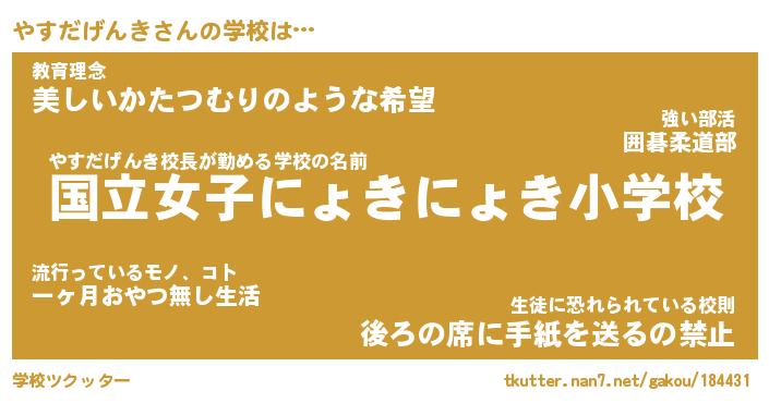| 女子向けラノベタイトル風あだ名 | 『誰かこのやすだげんきを説明してください! ~契約から始まるウェディング~』 |