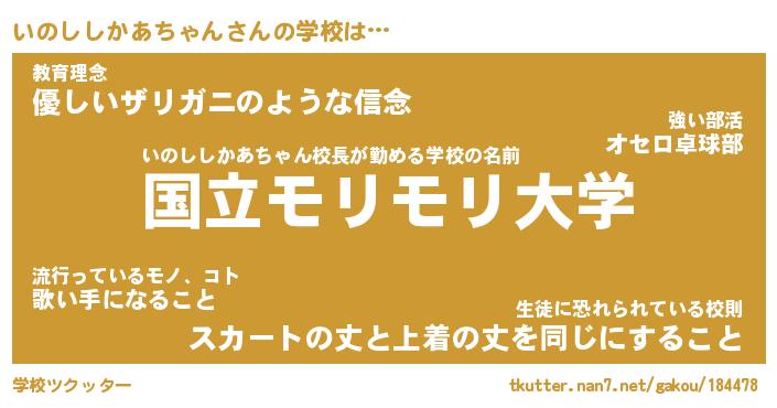 | 男性向けラノベタイトル風あだ名 | 『いのししかあちゃんの憂鬱』 |