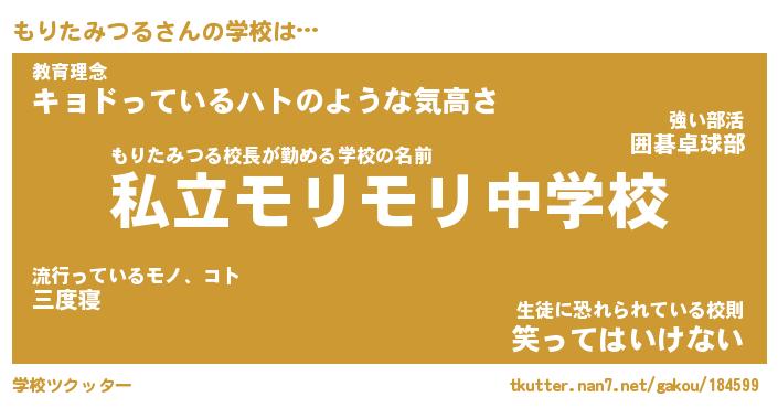 | 肩書あだ名 | 『もりたみつるCEO』『もりたみつる教頭』 |