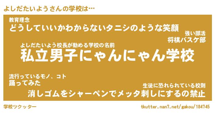| 男性向けラノベタイトル風あだ名 | 『よしだたいようの憂鬱』 |