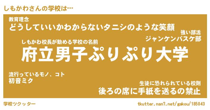 | 意味不明あだ名 | 『ペロリンしもかわ』『永久保存しもかわ』 |