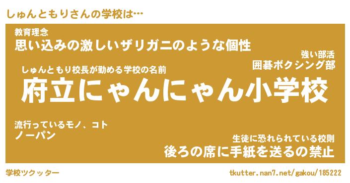 | ヒーロー風カッコイイあだ名 | 『スーパーシュントモリ』『天弓騎士シュ』 |