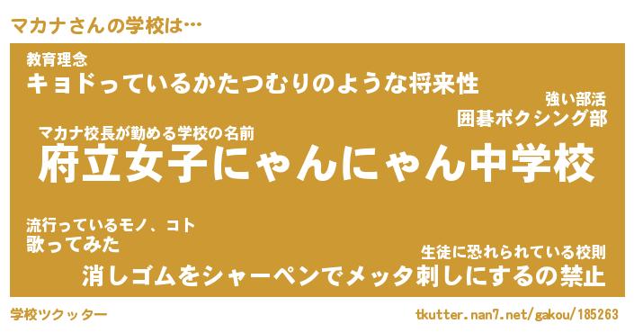 | ヘコむあだ名 | 『マカもー』『酢こんぶ』『マカっ子』 |