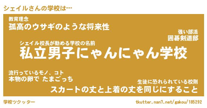 | 意味不明あだ名 | 『ペロリンシェイル』『永久保存シェイル』 |