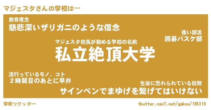| 女子向けラノベタイトル風あだ名 | 『(仮)マジェスタのやんごとなき事情』 |