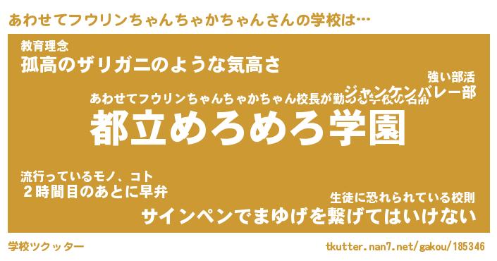| 男性向けラノベタイトル風あだ名 | 『あわせてフウリンちゃんちゃかちゃんの憂鬱』 |