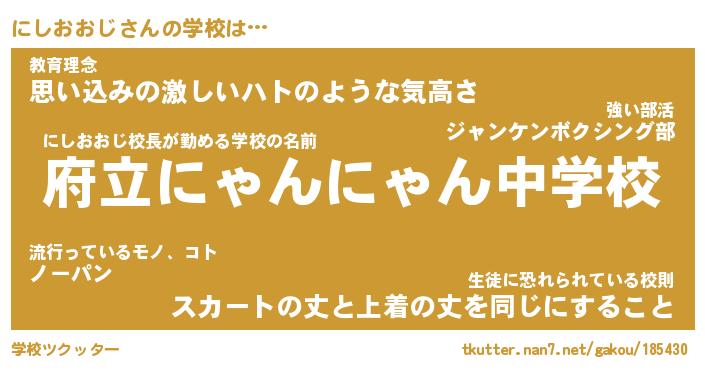 | 男性向けラノベタイトル風あだ名 | 『にしおおじの憂鬱』 |
